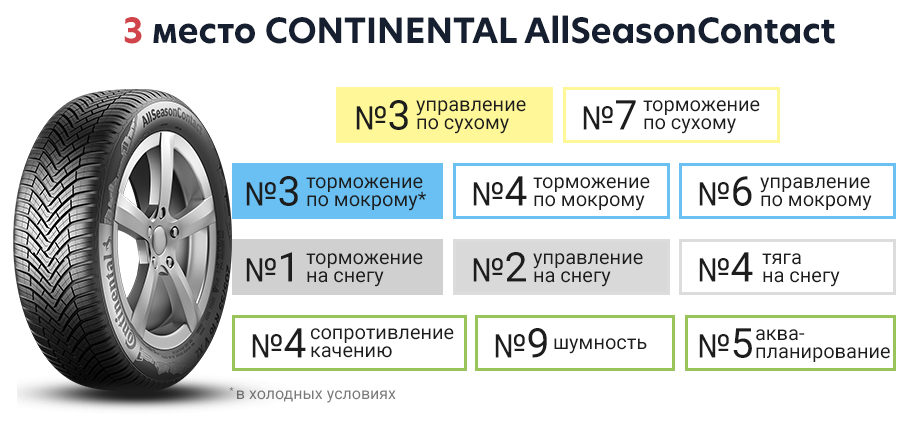 Шина Continental AllSeasonContact показала хорошие результаты практически в любых условиях и была особенно хороша на снегу. Оптимально сбалансированная всесезонная шина, превосходная для зим с обильным выпадением снега.